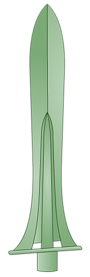 - гэ с относительно узким лезвием (яп. 中細形銅戈) — гэ с несколько расширенным лезвием; использовался в конце периода Яёй, обнаружен преимущественно на Кюсю, в префектурах Фукуока и Сага.