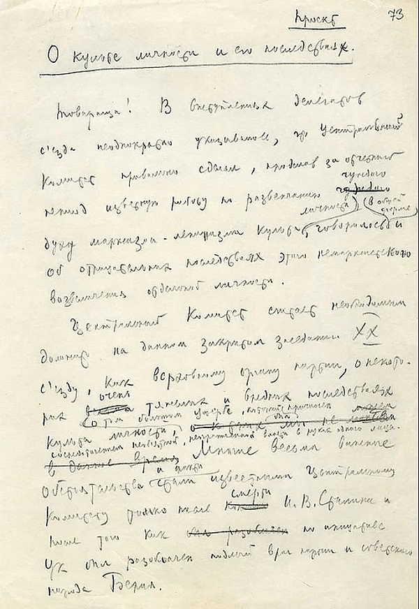 - «Письмо к съезду» и заметки Н. К. Крупской о личности Сталина;