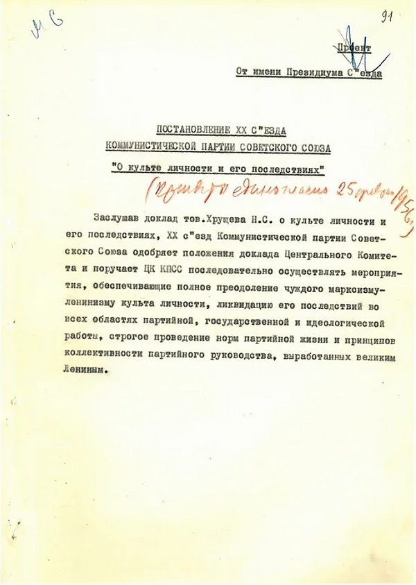 | Доклад Н. С. Хрущёва «О культе личности и его последствиях» | |