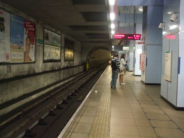 Дальнейшее продление от Кинг Джордж V до Вулвич Арсенал было открыто 10 января 2009 года, рядом с запланированной остановкой Crossrail.[27] Согласие правительства на этот проект было получено в феврале 2004 года с проектной стоимостью £150 million в связи с необходимостью постройки второго тоннеля через Темзу.[28] Строительство началось в июне 2005 года, в тот же месяц, когда были заключены все контракты,[29] а тоннели были закончены 23 июля 2007 года,[30] и были открыты Борисом Джонсоном, мэром Лондона 12 января 2009 года.[31]