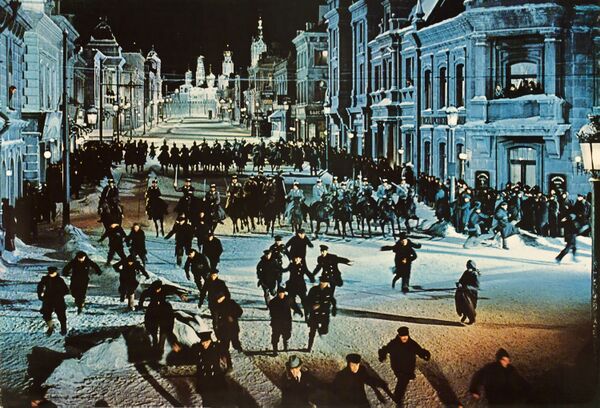 Трагическая фигура главного героя сторонится эпохальных перемен. Критики среди основных проблем картины отмечали странное бессилие и равнодушие героев, которых словно несёт течением бурного времени[65]. Режиссёр считал, что не обязательно излишне фокусировать внимание на исторической канве[1]. Особенность режиссёрского решения, найденного в ходе съёмок, состояла в том, что Лин решил не уделять пристальное внимание насилию и крови. Это заметно по сцене разгона демонстрации. Сцена, следуя общему замыслу, словно подсмотрена из глаз Юрия. Он шокирован жестокостью казаков, разгоняющих мирных жителей, и не хочет её видеть. Только в конечных кадрах камера фокусирует внимание зрителя на крови и смерти[24]. Эпизод был создан под влиянием известной сцены жестокого разгона демонстрации из «Броненосца „Потёмкина“» Эйзенштейна. Очень сложно в романе и фильме провести привычные причинно-следственные связи в поступках героев и событий. Сценарист был даже вынужден ввести в повествование фильма связующую нить в виде рассказчика с тем, чтобы зритель не потерял интерес[64].