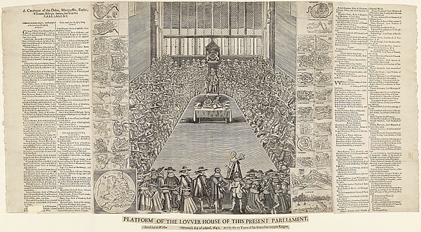 Спикером палаты общин долгое время был Уильям Лэнтхэл. Во вторник, 4 января 1642 г. король вошёл в палату общин с целью схватить пятерых членов парламента. Те были предупреждены и потому бежали в Сити. Карл занял кресло спикера и, не обнаружив разыскиваемых членов парламента, заявил: «Я вижу, птички улетели». Затем он повернулся к Лентхэлу, который стоял ниже, и спросил у него: «Был ли кто-нибудь из этих персон в палате, видел ли Лентхэл кого-нибудь из них в палате, если нет, то где они находятся»? Лентхэл упал на колени и отвечал: «May it please your Majesty, I have neither eyes to see nor tongue to speak in this place but as the House is pleased to direct me, whose servant I am here» (На русский язык переводится примерно так: «Может такой ответ устроит ваше Величество, сейчас я буду слеп и безмолвен, потому что Палата назначила меня, и я являюсь её слугой»). Смысл этой фразы сводится к тому, что: «я вам отвечу только в том случае, если мне это прикажет парламент», то есть спикер подчиняется парламенту, а не королю. После неудачи в поимке пятерых членов Палаты общин, боясь за жизнь своей семьи, Карл покидает Лондон и перебирается в Оксфорд. За ним последовали роялисты, и в Оксфорде они сформировали альтернативный парламент. В отсутствие роялистов Долгий парламент продолжал заседать на протяжении всей гражданской войны и просуществовал до акта о самороспуске.