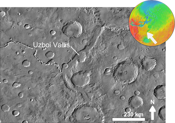 Сейчас долина Узбой, долины Ладон, Жемчужная земля и долина Арес разделены крупными кратерами, но предполагается, что когда-то они входили в состав одного большого канала, по которому вода текла на север, к равнине Хриса[4]. Вода в этот канал поступала из крупной впадины Аргир, ранее заполненной до краев. Согласно данной гипотезе полная длина этой системы долин составляет свыше 8000 км. Это самая протяжённая из долин, известных в Солнечной системе.