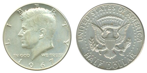 | ½ доллара | Джон Кеннеди | Белоголовый орлан — геральдический символ США | ||