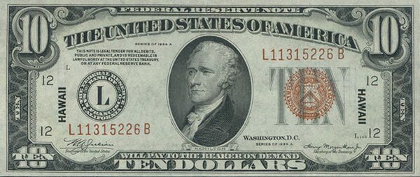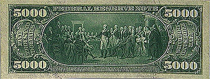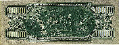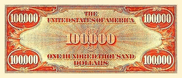 Банкноты 100 000 долларов выпущены в 1934 году, в обороте не находились и использовались только во внутренних расчётах ФРС и казначейства.