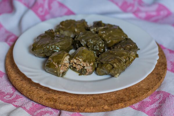 - В качестве начинки используется мясной фарш, рис или крупа. В её состав могут входить добавки — приправы, орехи, лук, лимонный сок, оливковое масло.