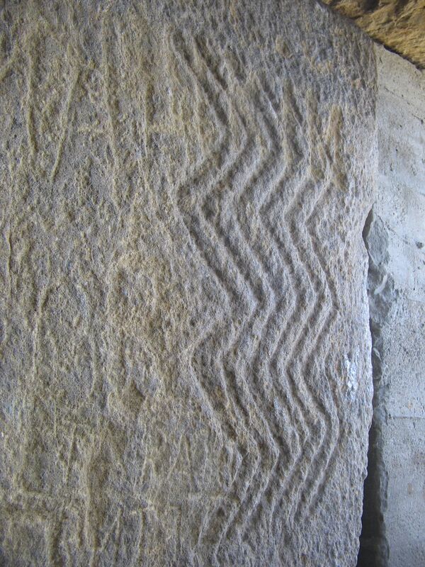 Особняком стоят средневековые аланские склепы в Карачаево-Черкесии, практически полностью покрытые волнистыми бороздами и разнообразной символикой. Ранее считалось, что аланы украсили более древние постройки[19][20]. Особенно выделяется своими сюжетными изображениями так называемый «царский мавзолей», в которых имеются уже христианские мотивы[39].