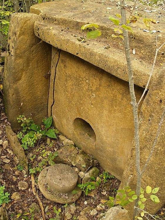 - Корытообразные — вырублены в массиве скалы или в большом камне. Могут иметь обычную плиту-крышу или переворачивались дном вверх. Сейчас их иногда называют полумонолитами или даже объединяют с монолитами.