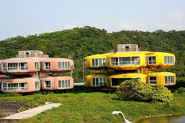 В 1975 году на Тайване умер видный политик и полководец Чан Кайши и одним из монументов лидеру Гоминьдана должен был стать футуристический комплекс домов в форме летающих тарелок. В 25 км от столицы в начале 1970-х стартовала стройка из бетона и прочного стекловолокна, которая должна была стать верхом инженерной мысли того времени. В каждую из «тарелок» можно было подняться по изящной мраморной лестнице, а спуститься — прямо в океан или бассейн по водной горке со второго этажа. Ожидалось, что курорт Саньчжи принесет немало туристских денег. Но в начале 1980-х, когда дома уже покрасили и готовили к сдаче, в Восточной Азии грянул энергетический и кредитный кризис, и компания-застройщик обанкротилась. В 1989 году у проекта нашлись новые инвесторы, однако по причине разногласий между ними в конце того же года возобновившееся строительство было окончательно свёрнуто[3].