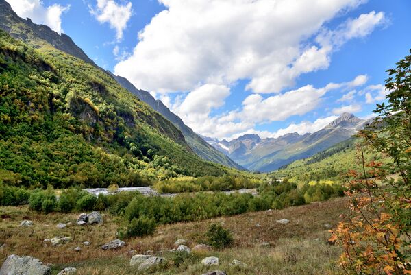 Соединение трёх главных ущелий: Алибека, Аманауза и Домбай-Ёльгена — образует естественный центр территории — живописную Домбайскую поляну, лежащую на высоте 1630—1650 метров над уровнем моря[1].