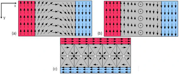 Причиной образования магнитных доменных стенок является конкуренция между обменным взаимодействием и магнитной анизотропией, которые стремятся увеличить и уменьшить толщину стенки соответственно[1]. Толщина доменной стенки оценивается по порядку величины как