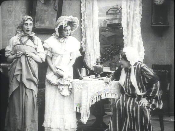 Пожилая вдова (Прасковья Максимова) живёт в собственном домике с незамужней дочерью Парашей (Софья Гославская). Вдова просит дочь найти недорогую кухарку. Параша приводит в дом под видом кухарки Мавруши переодетого в женское платье офицера (Иван Мозжухин), в которого она влюблена. Этот водевильный маскарад приводит к целому ряду забавных ситуаций. В конце концов вдова застает «Маврушу» за бритьем утренней щетины, и обман раскрывается.