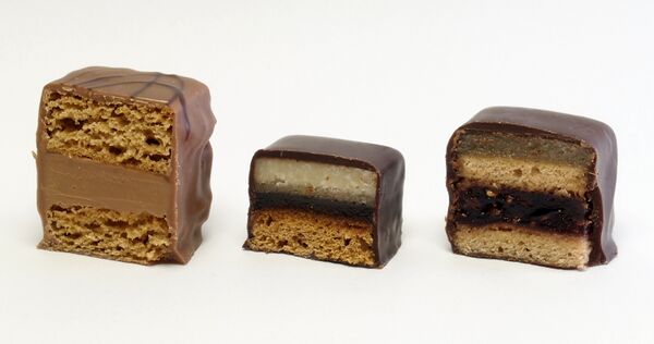 Это слоёное изделие, родственное мильфейю, торту «Опера», пуншкрапфену и печенью Jaffa Cakes. Доминоштайн состоит из основы в виде пряника (лебкухена), среднего слоя из фруктового желе (например, из вишни или абрикосов) и верхнего слоя из марципана или персипана. Покрывается (обычно) тёмным шоколадом[1][2].