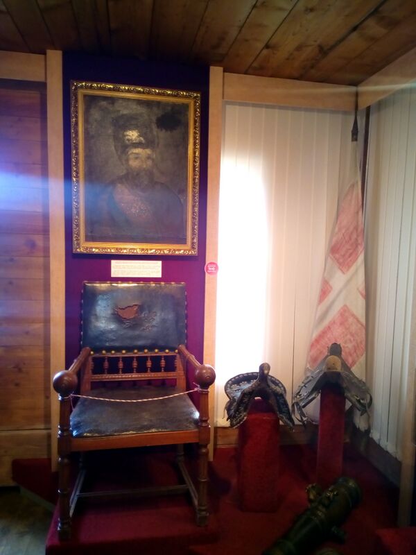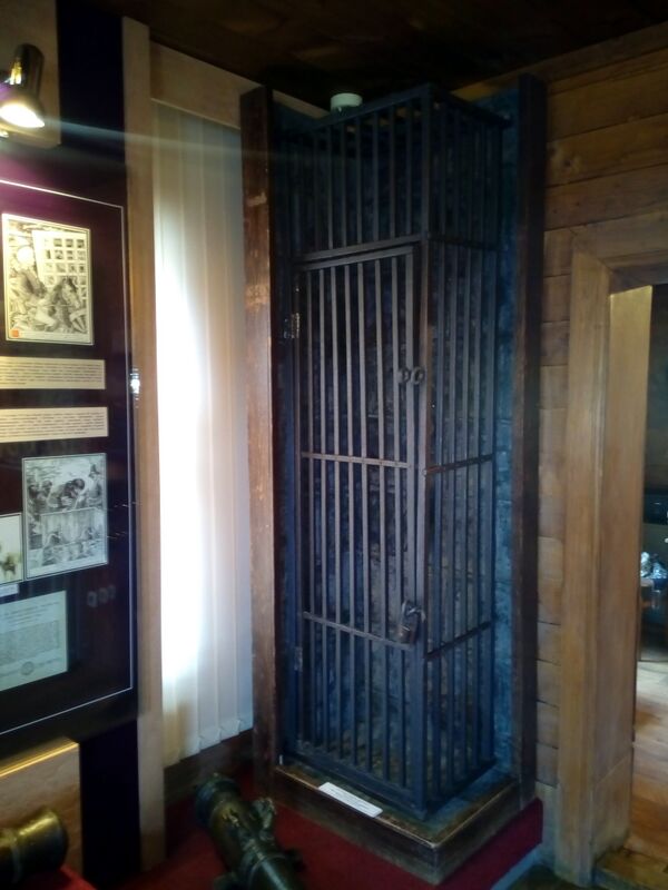 Среди них трон XVIII века, сделанный без единого гвоздя, пушка Каменского завода 1713 года, шпага с именной надписью, подаренная Екатериной II французскому генералу Ансену де Жебаро за храбрость при подавлении восстания Пугачёва, шитые золотом кожаные перчатки, которые императрица пожаловала атаману Бородину, сопровождавшему Пугачёва до самой Москвы, а также копия железной клетки (оригинал находится в ГИМ), в которой Пугачёва повезли в Москву[4][8][9].