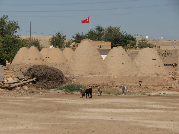 В городе Харран, Турция, сохранились дома, имитирующие архитектуру улья. Сооружения обычно сгруппированы вместе, как колония термитов. Они были построены в виде конусов, без окон, потому что это был единственный проверенный веками способ вывести крышу дома без использования древесины: деревянных опор, стропил и других деревянных элементов[6]. Дома Харрана представляют собой куполообразные дома, построенные в городских стенах методом сухой кладки. Соседние дома строились рядом друг с другом, поскольку соседи часто были родственниками. Комнаты домов соединены между собой изнутри проёмами и проходами. Согласно пониманию ислама, дома делятся на две части: селямлик и гаремлик (от тур. haremlik — убежище, укрытие).