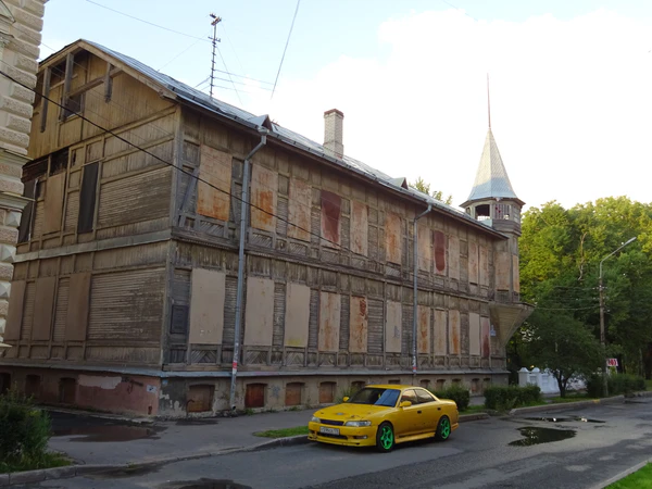 Сведения об авторе проекта дома не сохранились. Деревянный особняк был оформлен в стиле модерн, главным его украшением стала высокая угловая башенка со шпилем. До 1896 года дом принадлежал статскому советнику Кекину, у которого Михаил Волков выкупил здание в начале XX века. Официально право собственности было зарегистрировано на супругу Ирину Никтополионовну. Волковы владели домом до революции[2].