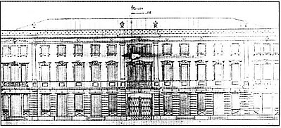 Здание приобрело нынешний облик после перестройки в 1861 году. На фасаде здания было возведено восемь колонн, на первом этаже проведена облицовка рустикой, центральная часть здания была надстроена до трех этажей. Окна первого этажа отделаны замковыми камнями, над окнами второго этажа выполнены сандрики на кронштейнах. Фасад здания украшен портиком с восемью колоннами ионийско-коринфского ордера. Колонны, соединенные ограждениями с балясинами, образовали на втором этаже балкон.