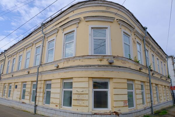 Двухэтажное Г-образное каменное здание с закруглённым фасадом, выходящим на улицы М. Горького и Ленина, перекрыто высокой двускатной крышей. Центральная ось членения приходится на скруглённую угловую часть. Оба крыла здания прорезаны регулярными рядами окон. Продольная расшивка первого этажа, поэтажные карнизы в духе русской классической архитектуры.