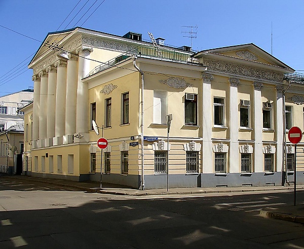 Соседнее здание от усадьбы Лаврентьева по Девяткину переулку в 1810-х годах принадлежало семье Матвея Матвеевича Казакова. После его смерти в 1819 году владение было разделено: основную часть здания оставили, а угловую часть решили продать надворному советнику Ивану Васильевичу Лаврентьеву. Позже он купил и соседную часть, тем самым объединив участки[1].