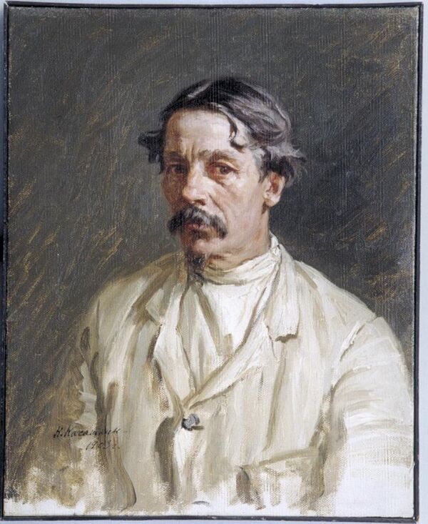 Николай Алексеевич Касаткин (1859—1930) был русским живописцем, родился и скончался в Москве. Творческая деятельность пришлась на эпоху поздней империи и начала СССР, время социальных преобразований и революций. Касаткин обучался в Московское училище живописи, ваяния и зодчества под руководством ведущих мастеров передвижников, был членом Товарищества передвижников, академиком и действительным членом Императорская Академия художеств.
