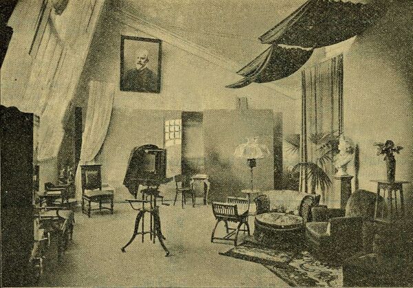 В 1900-х годах в доме на первом этаже располагался магазин, склад, ход на лестницу в фотопавильон, на втором этаже была жилая часть: гостиная с выходом на балкон, спальня детская, ванна, туалет. Сам дом общей площадью 133 квадратных саженей отапливался печью «Унтермак» в железном кожухе, русской печью, облицованной изразцами, прямыми и угловыми голландками. Одна из угловых печей была в изразцах со скульптурной группой женщины в ниспадающей одежде, фигуры с лирой и с книгой. Терраса с лестницей шла во двор из вымощенного бутового камня площадью 83 квадратных саженей, тротуар был из лещадных плит, и сад площадью в 60 квадратных саженей[2].