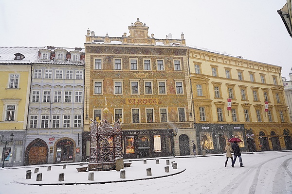 Здание стоит на месте, которое уже в 1405 году занимал дом, известный как «У страуса» (чеш. «U pštrosů»). Следующий владелец, Ян Охс (чеш. Jan Ochs), переименовал его в «У вола» (чеш. «U vola») или «У волка» (чеш. «U volka»). Около 1500 года владельцем первоначального здания становится Ян Пытлик (чеш. Jan Pytlík), который в 1488 году принимал участие в первом издании Библии на чешском языке, и с тех пор он назывался «Pytlíkovský dům». До сих пор современное злание иногда называют одним из старых названий.