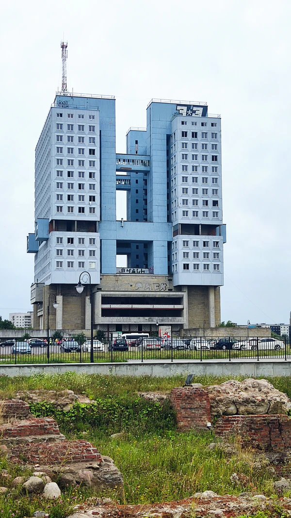 Считается, что Дом советов был построен на месте Кёнигсбергского замка, однако это не совсем так — на самом деле он стоит восточнее, на месте бывшего рва замка.