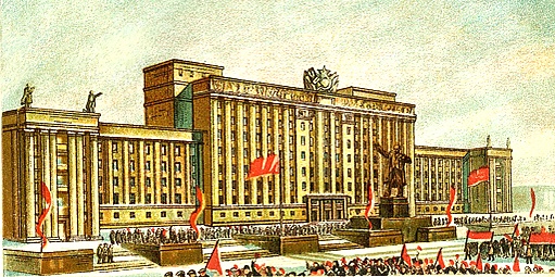 - 1945 год — завершение отделки здания дома советов.