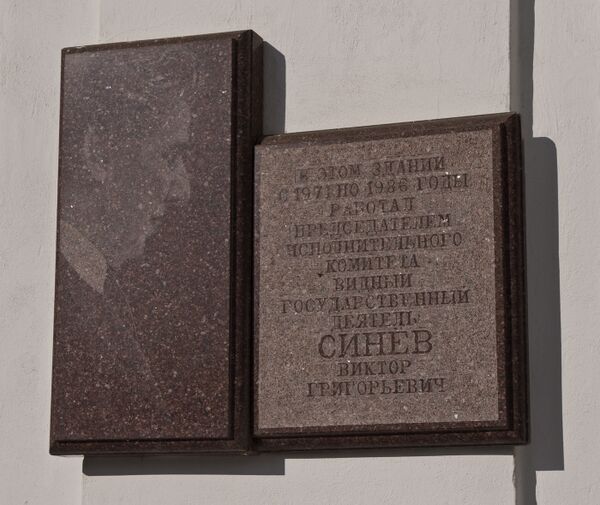 На здании Дома Советов укреплена мемориальная доска в память о работавшем здесь В. Г. Синеве — почетном гражданине г. Тирасполя, председателе исполкома Тираспольского городского Совета народных депутатов (1971—1986), члене правительства ПМР.