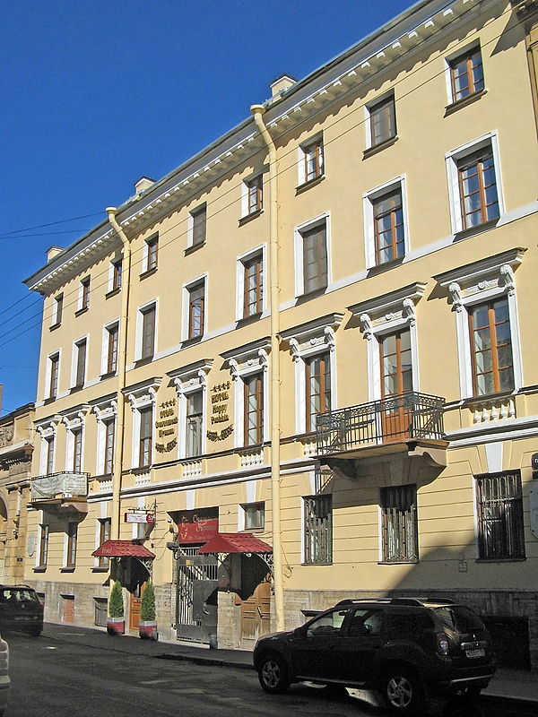 С осени 1831 года по 1832 год в доме по Галерной улице жил А. С. Пушкин вместе с женой, здесь он работал над альманахом «Северные цветы на 1832 год», в марте начал поэму «Езерский». В 1887—1888 гг. в доме жил Н. Н. Миклухо-Маклай, в связи с этим летом 1990 года на доме установлена мемориальная доска, архитектор Т. Н. Милорадович[3]