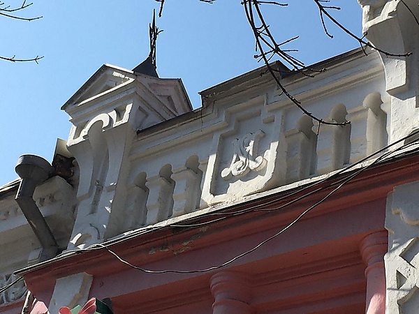 Над правым входом находится вензель бывшей владелицы в виде буквы «М»[2].