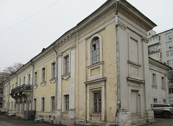 Дом характерен для раннего московского классицизма. Он прямоугольный в плане с небольшими выступами на торцах. Главный фасад оформлен пилястровым портиком ионического ордера, крайние пары окон обрамляют аналогичные пилястры. Аналогичные членения есть и на садовом фасаде. Центральную и боковые части фасадов также выделяет замена сухариков на крупные модульоны на карнизе. Оконные проёмы обрамлены наличниками сложной формы. Фасадные детали выполнены из белого камня. На заднем фасаде сохранился балкон на крупных белокаменных кронштейнах, украшенных тонкой резьбой, с уникальной ажурной просечной решёткой. Декор дома, а также торцевые выступы, сходны с домом Гендрикова, построенном неподалёку на несколько лет ранее. От первоначальной планировки сохранились парадная анфилада и сводчатые помещения первого этажа. Уцелел также фрагмент росписи в одном из залов парадной анфилады[2][3].