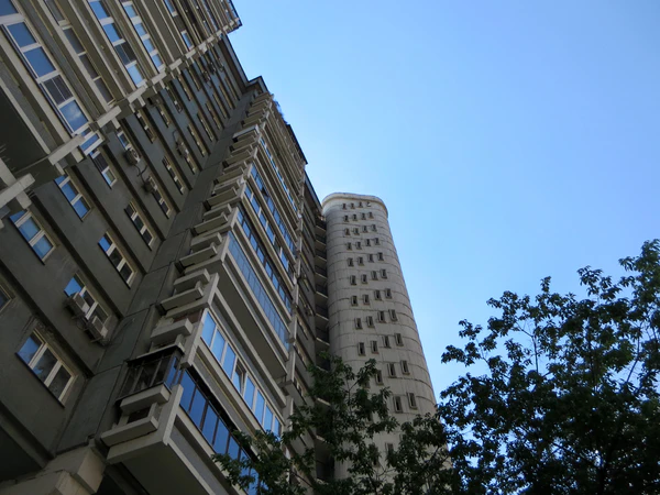 Жилые этажи собраны из стеновых панелей. В период, когда велось строительство, возможности для архитектурных решений были ограничены едиными стандартами строительных изделий заводского изготовления. Меерсон использовал серийные панели и наложил их внахлёст одну на другую. В результате «дом на ножках» визуально расширяется кверху, а его отделка внешне напоминает чешую или черепицу (см. фот. 4)[1]. Иллюзия «игры мускулами», свойственная архитектуре брутализма, перекликается с эстетикой московского художественного андеграунда 1970-х годов[11].