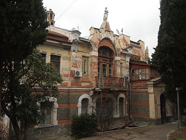 При проектировании и строительстве архитектор дал волю фантазии: размещённые на фасаде два вензеля-монограммы, с немецкими буквами «О» и «W» (первые буквы своих имени и фамилии), металлический герб на балконной решётке с изображением треугольника, циркуля, линейки и транспортира (некоторые усматривают в нём масонскиую символику[5]), небольшие декоративные окна в фоме градусника или замочной скважины, изящная печная труба, в архитектурных деталях некоторых углов особняка просматривается человеческая голова. Особый интерес исследователей вызывают скульптуры, украшающие крышу дома. По одной из версий, гипсовые скульптуры предназначались для парка и ограды Массандровского дворца, но, из-за перегруженности садово-парковой пластикой, оказались не нужны[6], и Вегенер каким-то образом заполучил их для своего дома. Но дело в том, что установленные в парке дворца гипсовые скульптуры пришли в негодность уже в 1910 году, а вегенеровские невредимы по сей день, поэтому высказывают предположение, что изготовлены они из высококачественного цемента, либо искусственного камня[3]. Бытуют версии, что скульптуры сделаны из белого мрамора[4], или же в самом деле гипсовые[5].