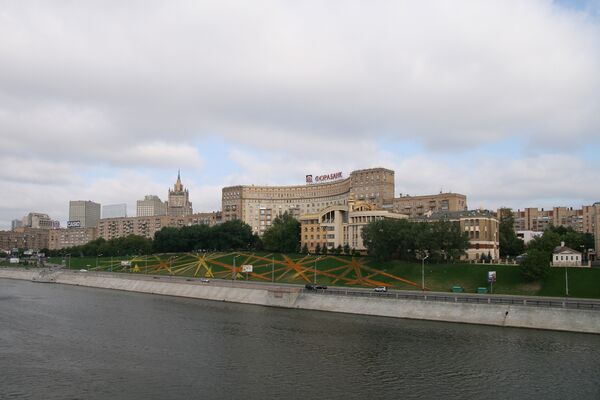 В течение 1934—1935 годов А. В. Щусев работает над реконструкцией Ростовской и Смоленской набережных левого берега Москвы-реки. Было принято решение строить на набережных жилые дома 8—9-этажной высоты и лишь в некоторых местах, во избежание монотонности линии застройки, увеличивать высоту до 14 этажей[2]. Проект застройки всего высокого берега реки зданиями со множеством портиков, стел, арок и других декоративных элементов в стиле сталинского монументализма. Громадность строения сближала его с гостиницей «Москва», Госпромом и ансамблем площади Гагарина. Однако проект не был утверждён из-за очевидной дороговизны и чрезвычайной сложности предстоящих работ.