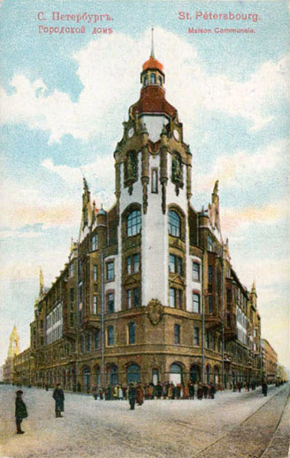 Победу одержал проект архитектора Александра Ивановича Дмитриева, второе место заняла разработка Александра Львовича Лишневского. Впрочем, несмотря на результаты конкурса, строительство решили начать как раз по замыслу Лишневского. Дело в том, что задумка А. И. Дмитриева предполагала неприемлемые для организаторов параметры здания: запланированная проектом высота превышала установленную в Санкт-Петербурге того времени норму 11 саженей. Приведение здания в соответствие с городскими законами — уменьшение проектной высоты — повлекло бы изменение пропорций и уменьшение объёмов строения. 31 мая 1904 года Городская дума утвердила проект, предложенный Александром Лишневским[4].