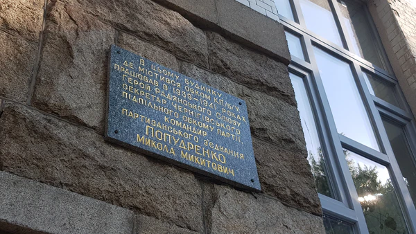 В 1980 году была установлена мемориальная мраморная доска подпольному обком КПУ, который здесь размещался (0,5×0,5 м); ныне демонтирована.