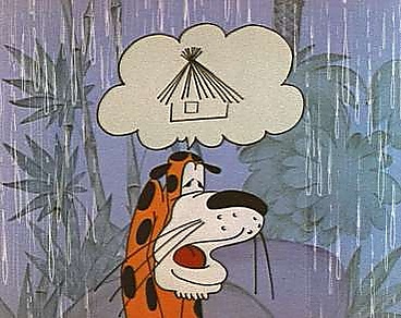 В джунглях начался сезон дождей. Все звери спрятались в свои дома, только у одного леопарда не было своего дома. Его жена с детьми укрылась под листьями пальмы, а сам леопард спит под дождём, и ему всё нипочём. Шёл мимо заяц и пристыдил леопарда, что он как отец семейства должен позаботиться о крове для своей семьи. Замечаниями заяц очень разозлил леопарда. И леопард отправился на поиски дома, а так как строить самому уж очень не хотелось, то решил он занять уже готовый.