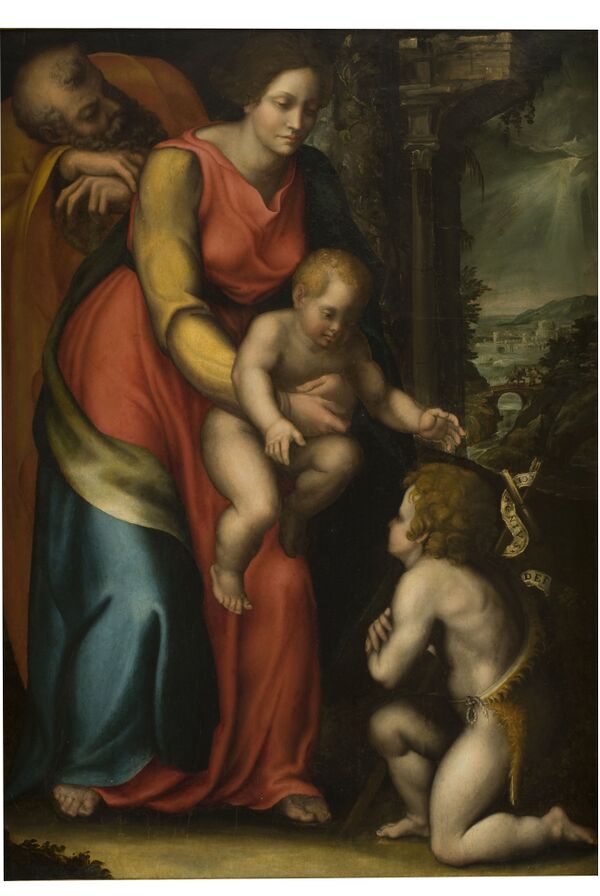 Образ «Святое семейство с младенцем Иоанном Крестителем», исполненный около 1516—1517 годов итальянским художником Себастьяно дель Пьомбо. Полотно «Мадонна с Младенцем» 1630-х годов художников Герарда Зегерса и Яна Брейгеля Младшего является повтором сюжета картины Рубенса и его мастерской[1].