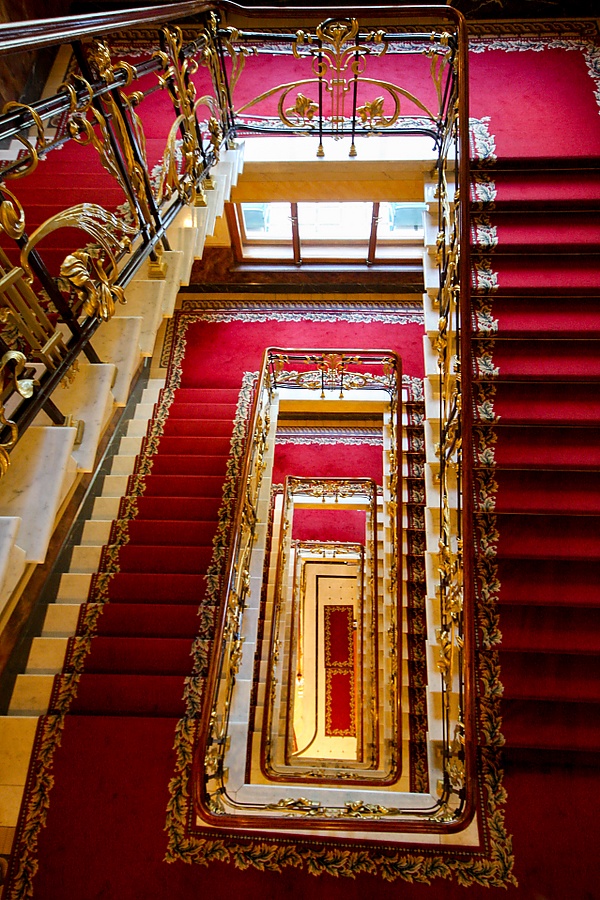 Выразительной отделкой отличались интерьеры здания, для которых использовали самые высококачественные материалы. Например, парадную лестницу сложили из каррарского мрамора, лестничные пролёты оформили мозаикой, перила сделали из красного дерева, декоративные элементы подчеркнули сусальным золотом[2]. Именно в интерьерах особенно ярко отражены черты стиля модерн — плавные криволинейные формы оконных проёмов, дверей, декоративных решёток[3].