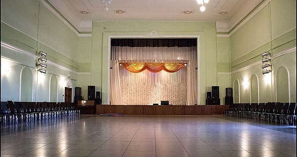 Вокруг вестибюля угловой части здания расположены зрительный зал на 600 мест, буфет фойе и т. д. В доме культуры расположены различные кружковые комнаты, а также административно-хозяйственные и вспомогательные помещения, к которым есть 2 входа[2].