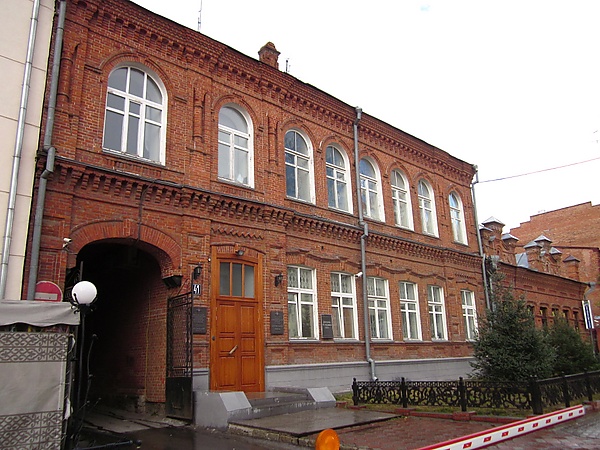 Главный южный фасад здания выходит на красную линию застройки Коммунистической улицы, восточный фасад примыкает к Дому Жернаковой.