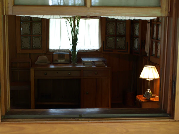Обстановка дома скромная и осталась неизменной со дня смерти Хо Ши Мина в 1969 году. На первом этаже расположен большой зал, в котором проходили заседания политбюро. В центре — длинный стол, окружённый бамбуковыми стульями. Сам Хо Ши Мин любил сидеть в ротанговом кресле, стоящем в левом углу. В другом углу расположены три телефонных аппарата для связи с Политбюро, здесь также можно увидеть стальную каску Хо Ши Мина времён войны. В правом углу стоит аквариум для развлечения пришедших в гости детей. На втором этаже находятся две комнаты — кабинет и спальня Хо Ши Мина. В кабинете из мебели — стол, стул и книжный шкаф, в спальне только кровать и шкаф. Из удобств в домике были лишь: веер из пальмовых листьев, ловушка для москитов, небольшой термос, бутылка воды, радиоприёмник, подаренный вьетнамскими революционерами, и электрический вентилятор, подарок от коммунистической партии Китая. У двери в качестве звонка висел небольшой бронзовый колокольчик. Рядом с домом находится гараж[3].