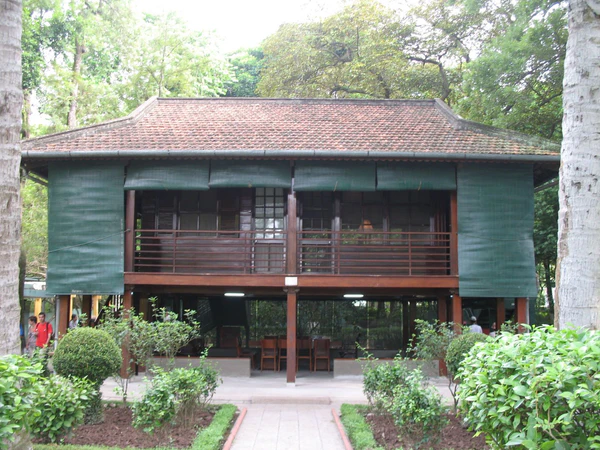 Будучи поборником равноправия, Хо Ши Мин носил одежду из коричневого хлопка и резиновые сандалии, сделанные из покрышек автомобиля, и жил в домике рабочего позади президентского дворца. В 1958 году он навестил бывшую штаб-квартиру сопротивления на северо-западе, где увидел домики на сваях, в которых он провел военные годы. Вернувшись в Ханой, он сказал, что хотел бы построить такой же домик у президентского дворца. Партия поручила разработку проекта архитектору из департамента военного строительства Нгуену Ван Ниню. Прежде чем начать строительство архитектор должен был показать свою работу Хо Ши Мину. Согласно оригинальному дизайну домик включал три комнаты, в том числе и туалет, но Хо Ши Мин желал, чтобы домик походил на настоящий — «Домик на сваях должен иметь только одну или две комнаты, и здесь, конечно же, не должно быть туалета», и архитектор подчинился. Дом был открыт к дню рождения Хо Ши Мина. 17 мая 1958 года Хо Ши Мин переехал в свой домик с двумя комнатами площадью по 10 м² каждая. Здесь он жил и работал оставшиеся 11 лет своей жизни[2].