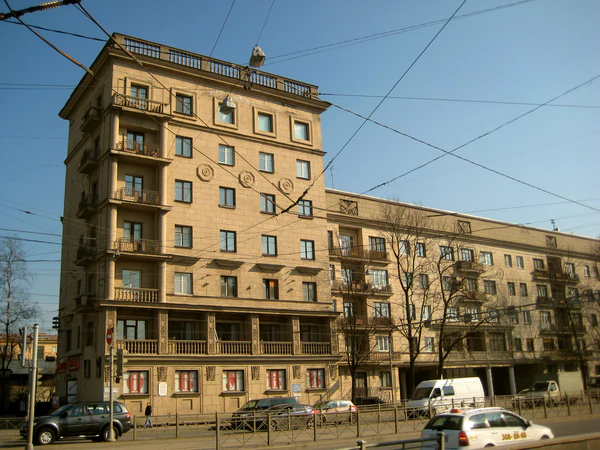 На фасаде здания сохранена надпись в память о блокадных годах: «Граждане! При артобстреле эта сторона улицы наиболее опасна». Дом пострадал от бомбардировок во время войны, а также (корпус 1) при строительстве подземного перехода при расширении Кантемировской улицы для двустороннего движения с Петроградской стороны в район Гражданки и Полюстрова в середине-конце 1980-х гг.