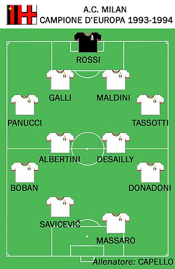 Годом позже клуб дошёл до финала Лиги чемпионов, но этот успех так и остался единственным в сезоне. Роберто провёл на поле 47 игр. В сезоне 1995/1996 Донадони стал часто уступать своё место в основном составе молодому Стефано Эранио[38], первоначально приглашённого на замену Мауро Тассотти[39]. А после ухода Капелло, выигравшего ещё один чемпионат Италии, Донадони принял решение уйти из «Милана».