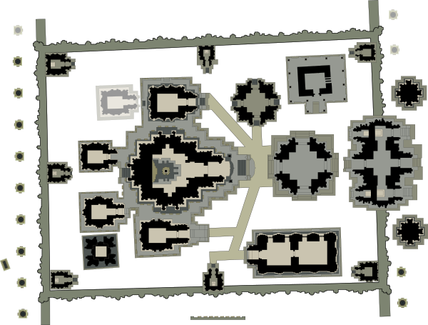 Пройдя первую гопуру, человек оказывался во дворе I, где находилась характерная тямская вихара с деревянной крышей, окружённая колоннами[3][10]. В западной части вихары (напротив входа) на трёхступенчатом алтаре располагалась статуя сидящего Будды с расставленными в стороны ногами, за эту позу его прозвали «Европейским»[10]. Содержание резьбы на алтаре полностью не выяснено. Вихару посещали не только монахи, но и простые прихожане, оставлявшие подношения и молившиеся там[10].