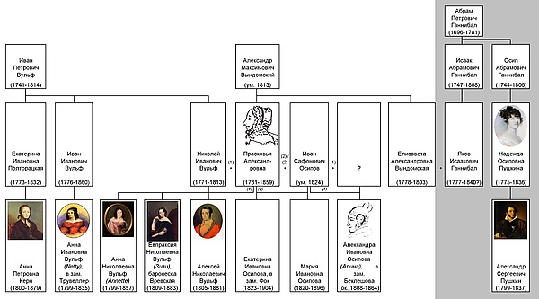 - «Анна» — Анна Керн (1800—1879),— адресат самого известного любовного стихотворения Пушкина — «К * * *» («Я помню чудное мгновенье…»), хотя в биографии Пушкина и шутливое игровое увлечение в Псковской губернии, и мимолётная близость через три года в Петербурге серьёзной роли не играли; в письмах Пушкина друзьям есть и довольно циничные замечания о Керн.