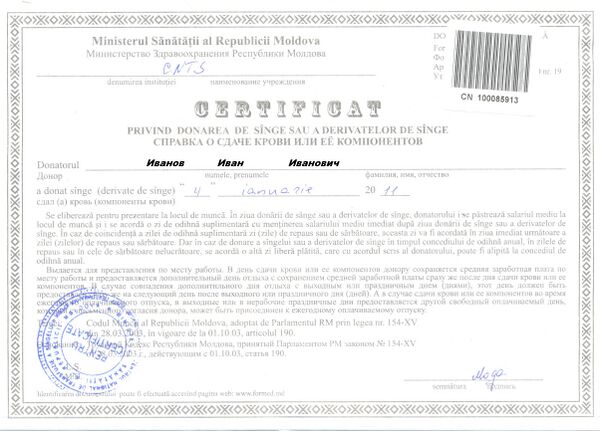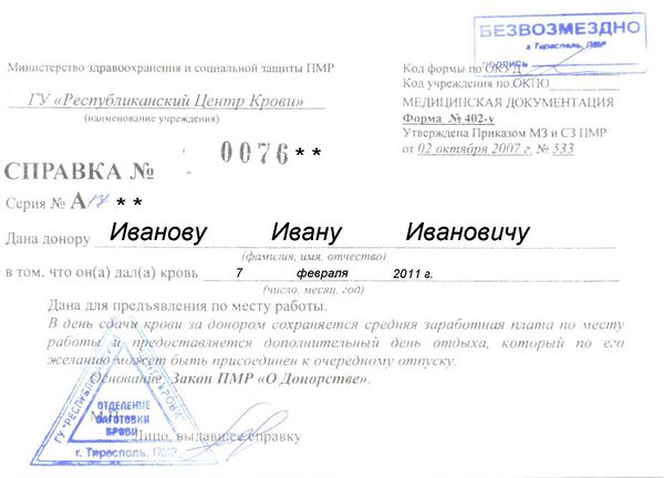 - Донорство крови в Приднестровье Архивировано 12 мая 2012 года.