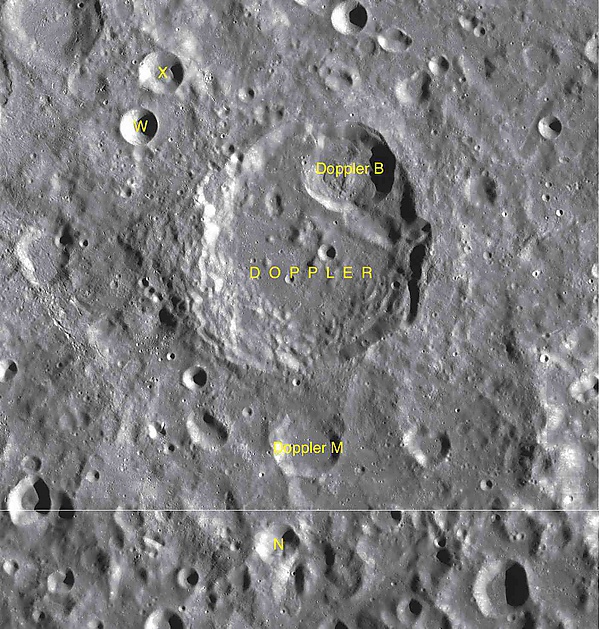 - Северо-восточная часть кратера Доплер, снимок с борта Аполлона-8